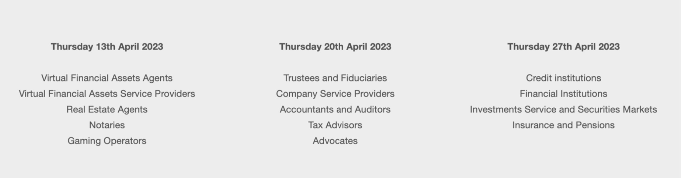 The deadlines for submission depend on the sector, which the subject person operates in.  The deadlines have been set as follows: