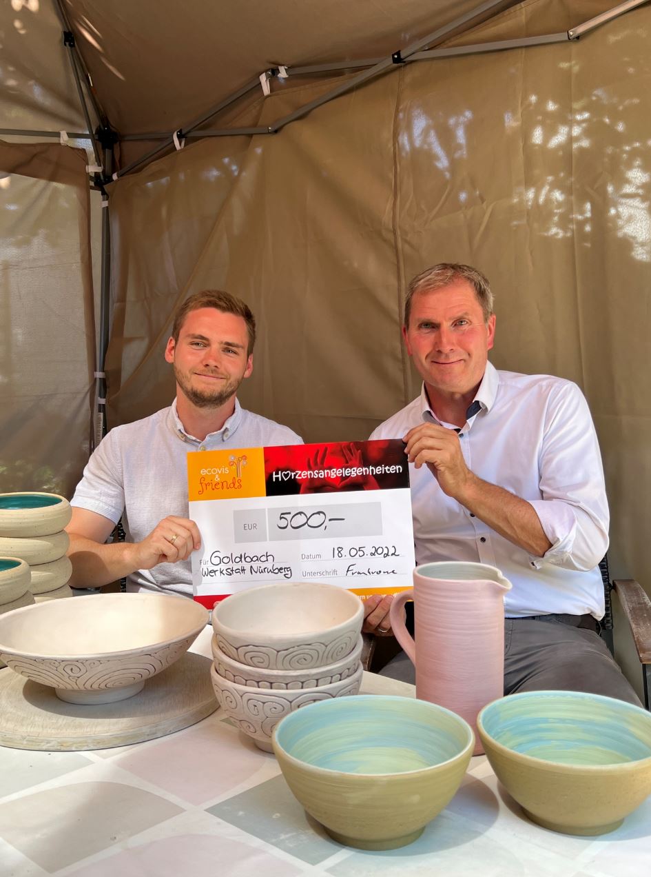 Valentin Frankrone, Rechtsanwalt bei Ecovis in Nürnberg, hat sein Herzensprojekt gefunden: „Ich habe die Goldbach Werkstatt in Nürnberg unterstützt. Somit konnte sie einen neuen Pavillon kaufen, der Töpfern draußen im Schatten möglich macht.“